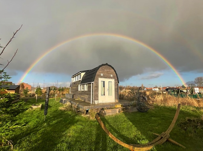 Daarnaast bleven we natuurlijk ook allerlei andere kanalen in de gaten houden, waaronder ‘Tiny Findy’. ‘Tiny Findy’ is een soort van ‘Funda’ voor Tiny Houses. Net op het moment dat we serieuzer na gingen denken om ‘normaal’ te gaan wonen, om zo te kunnen investeren in onze toekomst, kwam er een prachtige kans voorbij. Paasduin 2 stond te koop, dat leek natuurlijk te mooi om waar te zijn! We hebben contact gezocht met de verkopers en zijn naar een open huis dag geweest. We waren direct verliefd en hebben, zoals gevraagd, een motivatiebrief geschreven om kans te maken op het huisje. Daarna rolden we een selectieprocedure in waarbij we uiteindelijk door onze buren uitgekozen werden als nieuwe bewoners. We konden ons geluk niet op!